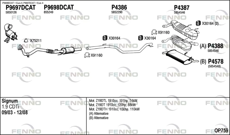 OPEL SIGNUM Šikmá zadní část (Z03) 1.9 CDTI (F48) - Výfukový systém - kompletní od 8/2005 do 2/2008, 1910 ccm, 74 kW, 100 hp, Z 19 DTL, Šikmá zadní část