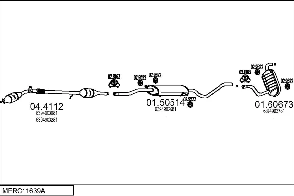 MERCEDES-BENZ VITO autobus (W639) 109 CDI (639.701, 639.703, 639.705) - Výfukový systém - kompletní od 9/2006, 2148 ccm, 70 kW, 95 hp, OM 646.980, OM 646.981, autobus