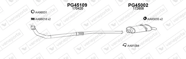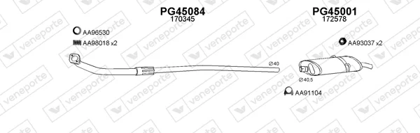 PEUGEOT 205 II (20A/C) 1.1 XA - Výfukový systém - kompletní od 7/1987 do 10/1988, 1118 ccm, 40 kW, 54 hp, E1, Šikmá zadní část