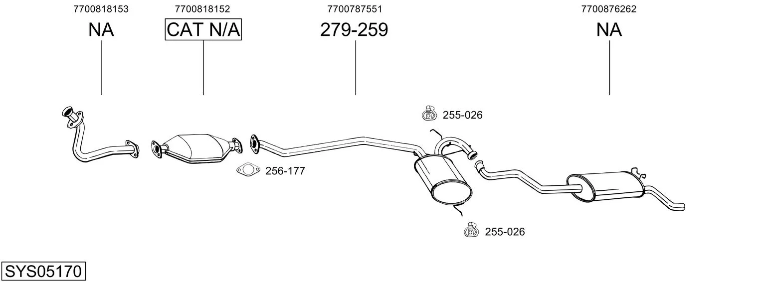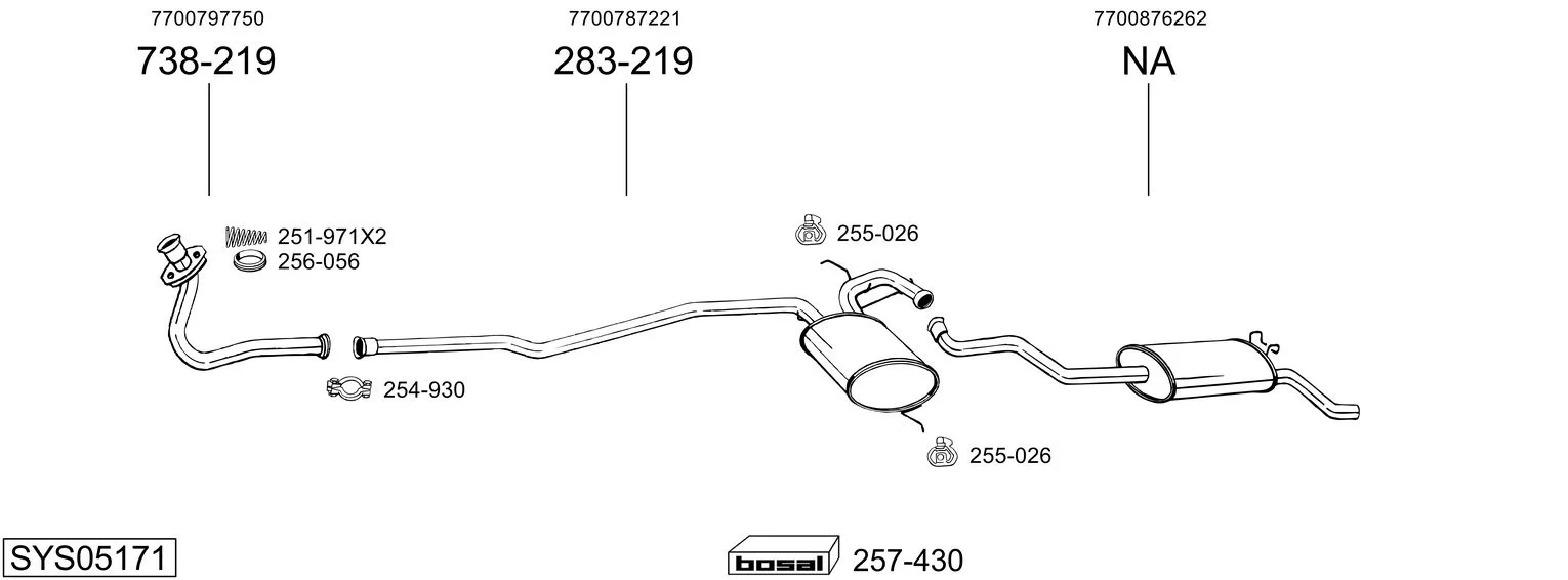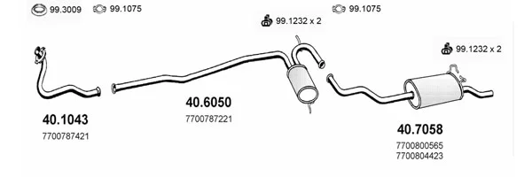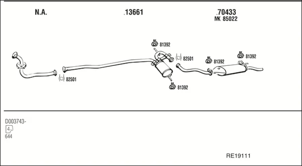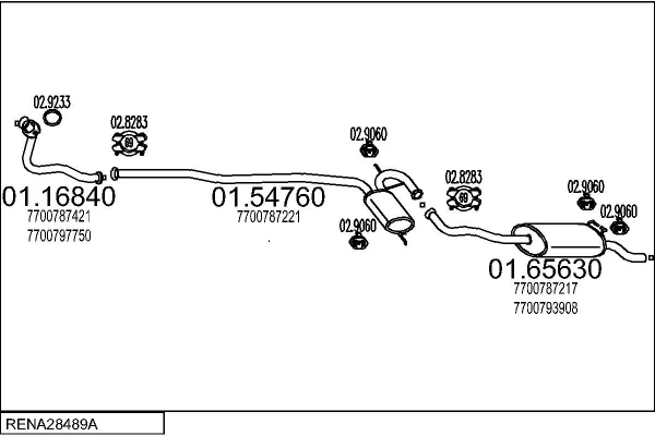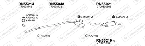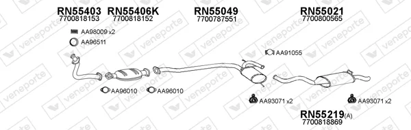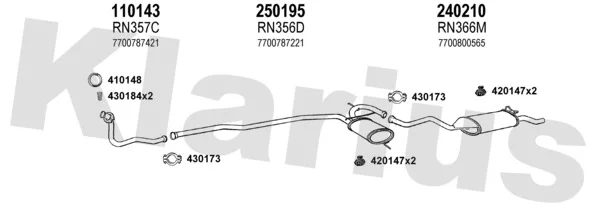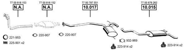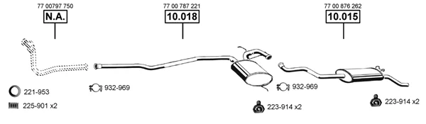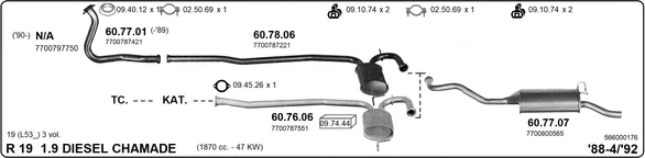 RENAULT 19 I Chamade (L53_) 1.9 D (L534, L53J) - Výfukový systém - kompletní od 10/1989 do 4/1992, 1870 ccm, 47 kW, 64 hp, F8Q 706, F8Q 742, limuzína