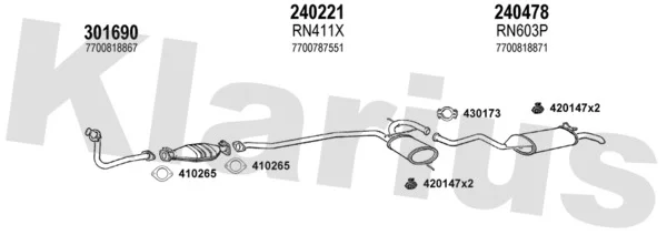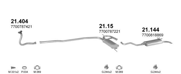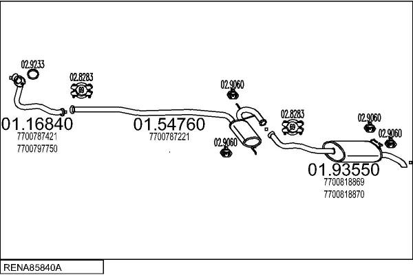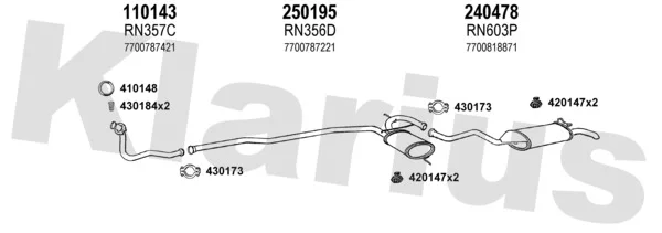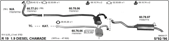 RENAULT 19 II Chamade (L53_) 1.9 D (L53J) - Výfukový systém - kompletní od 4/1992 do 12/1997, 1870 ccm, 47 kW, 64 hp, F8Q 742, limuzína