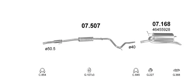 FIAT PALIO (178_, 171_, 371_) 1.2 - Výfukový systém - kompletní od 7/1997 do 8/2002, 1242 ccm, 44 kW, 60 hp, 178 B7.045, 178 C4.066, 188 A4.000, Šikmá zadní část