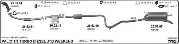 FIAT PALIO Weekend (178_, 173_, 373_, 374_, 171_) 1.9 JTD - Výfukový systém - kompletní od 9/2001, 1910 ccm, 59 kW, 80 hp, 188 A2.000, kombi