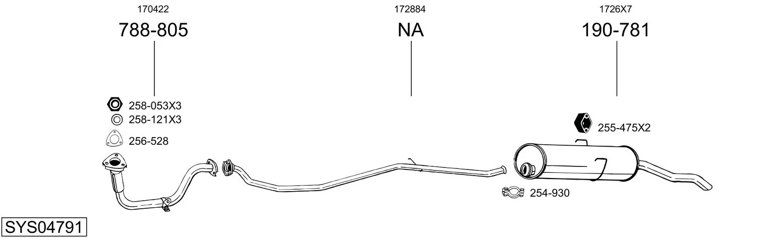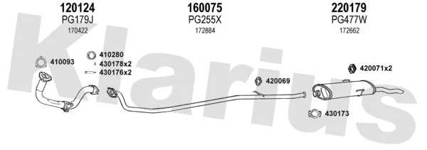 PEUGEOT 309 II (3C, 3A) 1.1 - Výfukový systém - kompletní od 9/1989 do 10/1993, 1124 ccm, 40 kW, 54 hp, H1B (TU1), Šikmá zadní část
