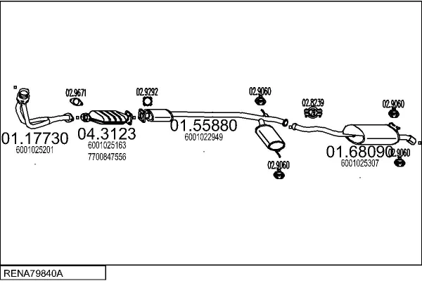 RENAULT 19 II Cabriolet (D53_, 853_) 1.8 16V (D53D) - Výfukový systém - kompletní od 4/1992 do 6/1996, 1764 ccm, 99 kW, 135 hp, F7P 704, Kabriolet