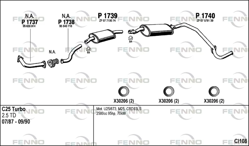 CITROËN C25 valník/podvozek (280_, 290_) 2.5 DT - Výfukový systém - kompletní od 1/1987 do 1/1994, 2498 ccm, 70 kW, 95 hp, CRD93LS (U25/673), valník/podvozek