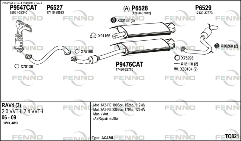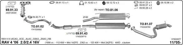 TOYOTA RAV 4 III (_A3_) 2.4 (ACA36, ACA38) - Výfukový systém - kompletní od 11/2005 do 12/2013, 2362 ccm, 125 kW, 170 hp, 2AZ-FE, SUV
