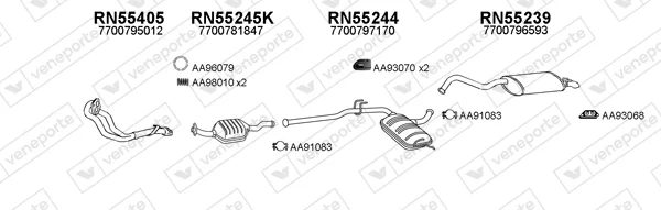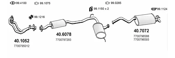 RENAULT 21 (B48_) 2.0 (B48R/Y) - Výfukový systém - kompletní od 2/1990 do 10/1992, 1995 ccm, 99 kW, 135 hp, J7R 740, Šikmá zadní část