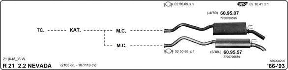 RENAULT 21 kombi (K48_) 2.2 (K48K) - Výfukový systém - kompletní od 6/1986 do 11/1993, 2165 ccm, 79 kW, 108 hp, J7T 754, J7T 755, kombi