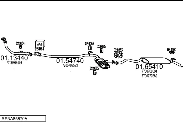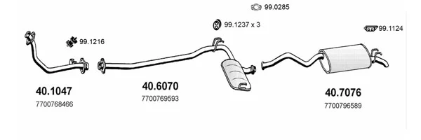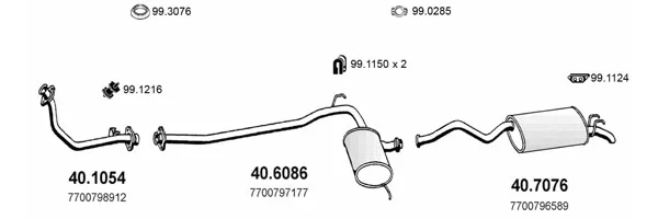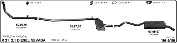 RENAULT 21 kombi (K48_) 2.1 D (K/S486) - Výfukový systém - kompletní od 10/1986 do 9/1990, 2068 ccm, 48 kW, 65 hp, J8S 704, kombi