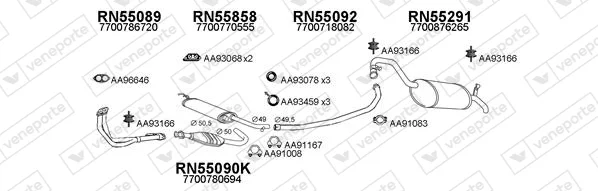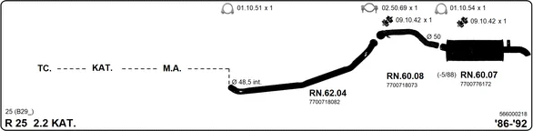 RENAULT 25 (B29_) 2.2 (B29B) - Výfukový systém - kompletní od 9/1986 do 12/1992, 2165 ccm, 79 kW, 108 hp, J7T 708, J7T 732, J7T 733, Šikmá zadní část
