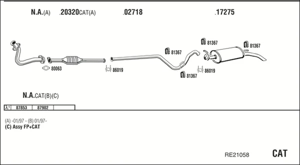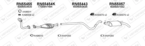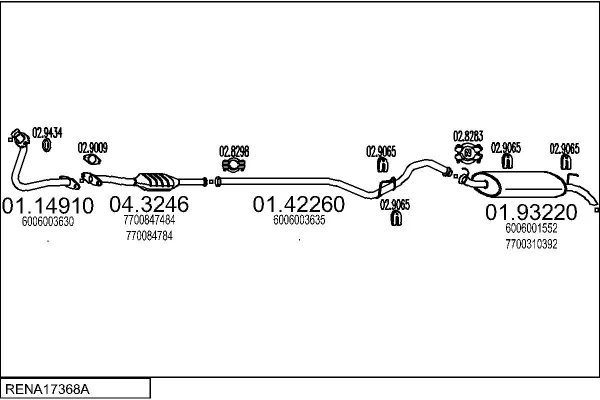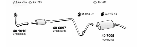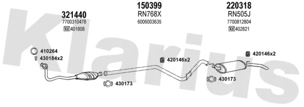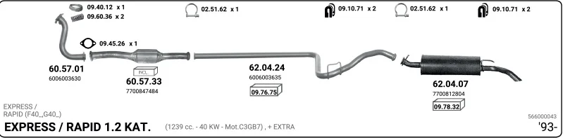 RENAULT RAPID Skříňová/velkoprostorová limuzína (F40_, G40_) 1.2 (F406, G40A) - Výfukový systém - kompletní od 9/1991 do 3/1998, 1239 ccm, 40 kW, 55 hp, C3G 710, C3G 712, Skříňová/velkoprostorová limuzína