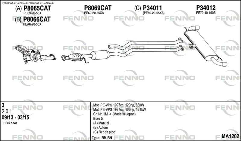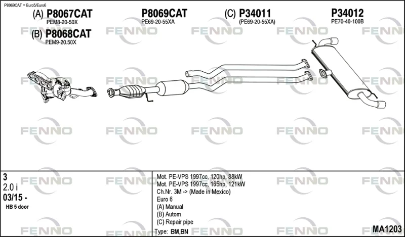 MAZDA 3 (BM, BN) 2.0 - Výfukový systém - kompletní od 7/2013 do 5/2019, 1998 ccm, 121 kW, 165 hp, PEX2, PEXL, PEY5, PEY7, Šikmá zadní část