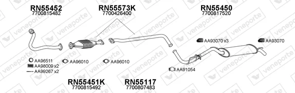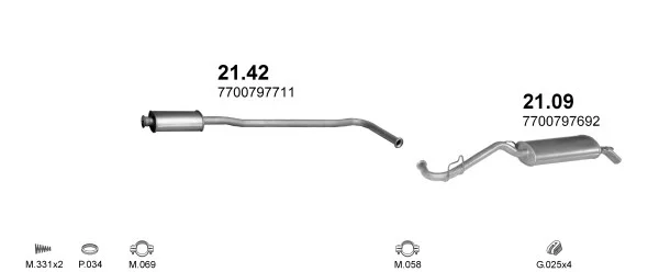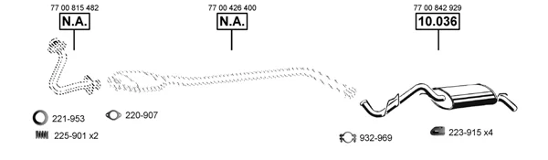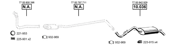 RENAULT CLIO I (B/C57_, 5/357_) 1.9 D (B/C/S576, B/C/S57L) - Výfukový systém - kompletní od 1/1991 do 9/1998, 1870 ccm, 47 kW, 64 hp, F8Q 730, F8Q 732, Šikmá zadní část
