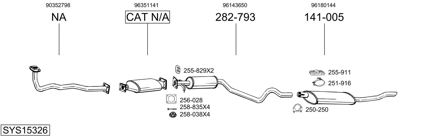 DAEWOO CIELO 1.5 - Výfukový systém - kompletní od 6/1994 do 7/1998, 1498 ccm, 66 kW, 90 hp, V15L, limuzína