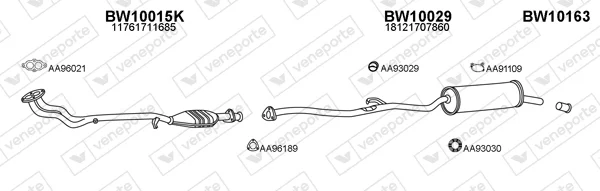 BMW 3 (E30) 318 i - Výfukový systém - kompletní od 12/1984 do 8/1988, 1766 ccm, 75 kW, 102 hp, M10 B18 (184KA), limuzína