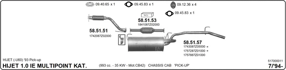 DAIHATSU HIJET valník/podvozek (_U60) 1.0 - Výfukový systém - kompletní od 10/1994 do 5/1998, 993 ccm, 35 kW, 48 hp, CB42, valník/podvozek
