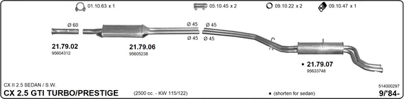 CITROËN CX II 25 GTi Turbo 2 - Výfukový systém - kompletní