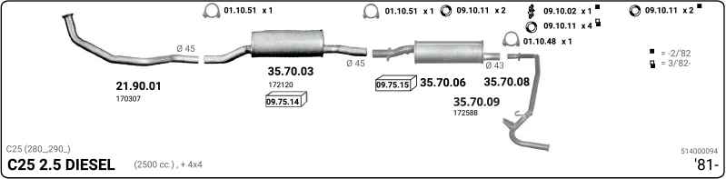 CITROËN C25 autobus (280_, 290_) 2.5 D - Výfukový systém - kompletní od 10/1985 do 2/1994, 2498 ccm, 54 kW, 73 hp, CRD93L (U25/661), autobus