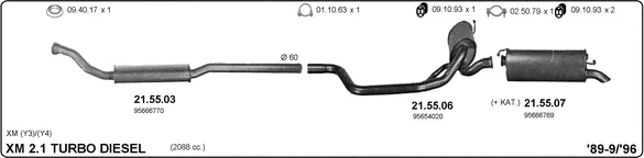 CITROËN XM (Y3) 2.1 TD 12V - Výfukový systém - kompletní od 5/1989 do 6/1994, 2088 ccm, 80 kW, 109 hp, P8A (XUD11ATE), PHZ (XUD11ATE), PJZ (XUD11ATE), Šikmá zadní část