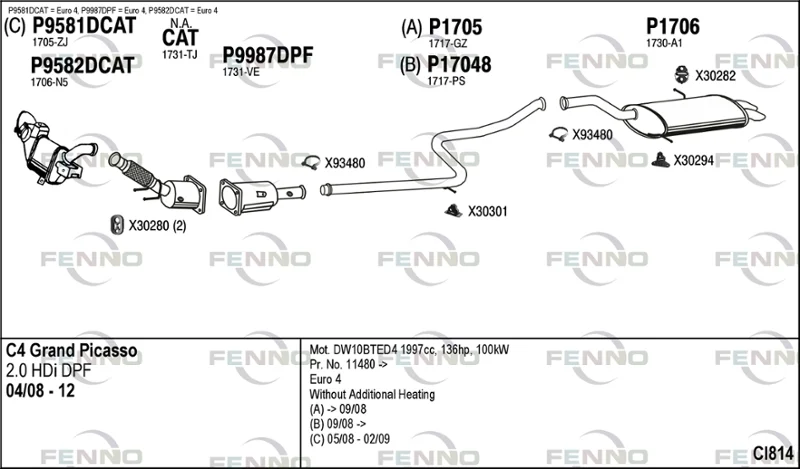 CITROËN C4 GRAND PICASSO I (UA_) 2.0 HDi 138 - Výfukový systém - kompletní od 10/2006 do 12/2013, 1997 ccm, 100 kW, 136 hp, RHJ (DW10BTED4), RHR (DW10BTED4), velkoprostorová limuzína