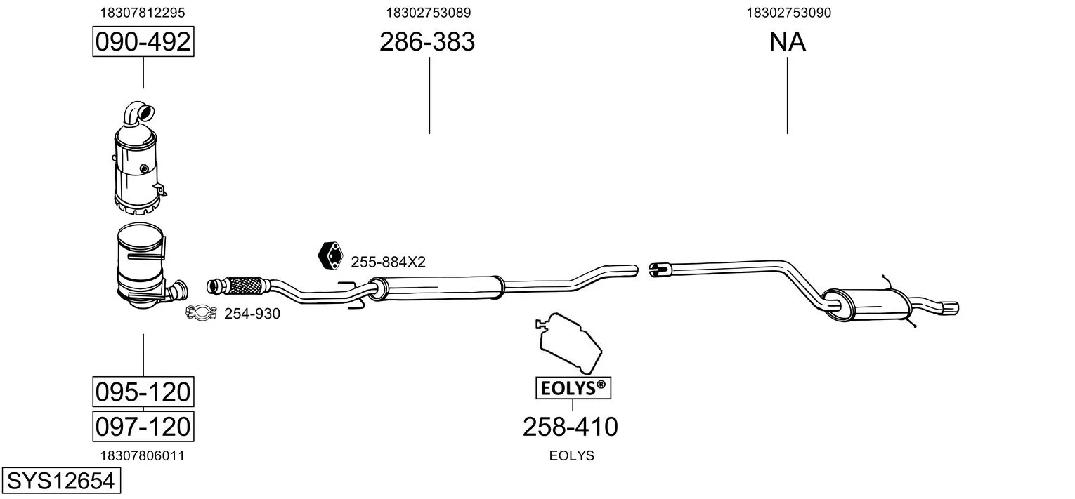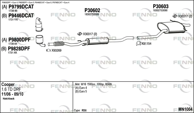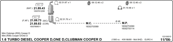 MINI MINI (R56) Cooper D - Výfukový systém - kompletní od 11/2006 do 9/2010, 1560 ccm, 80 kW, 109 hp, 9HZ (DV6TED4), W16 D16 (9HZ), Šikmá zadní část