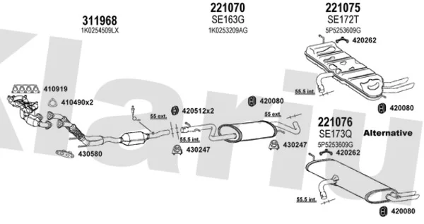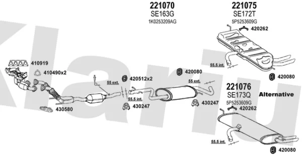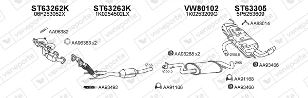 SEAT ALTEA XL (5P5, 5P8) 2.0 FSI - Výfukový systém - kompletní od 10/2006 do 3/2009, 1984 ccm, 110 kW, 150 hp, BVY, BVZ, velkoprostorová limuzína