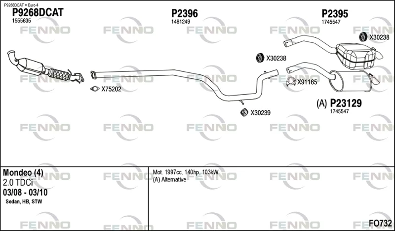 FORD MONDEO IV (BA7) 2.0 TDCi - Výfukový systém - kompletní od 3/2007 do 1/2015, 1997 ccm, 103 kW, 140 hp, QXBA, QXBB, UFBA, UFBB, Šikmá zadní část
