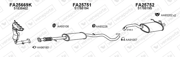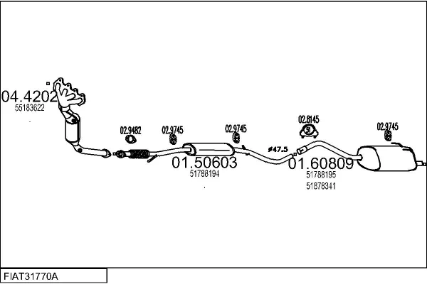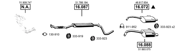 FIAT PANDA (169_) 1.4 (169AXE1B) - Výfukový systém - kompletní od 10/2006, 1368 ccm, 74 kW, 100 hp, 169 A3.000, Šikmá zadní část