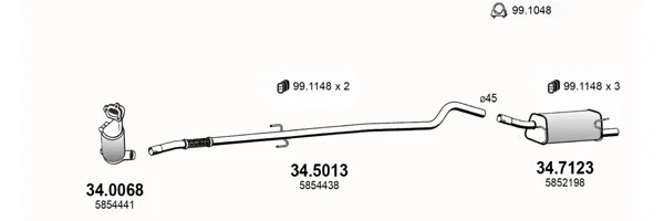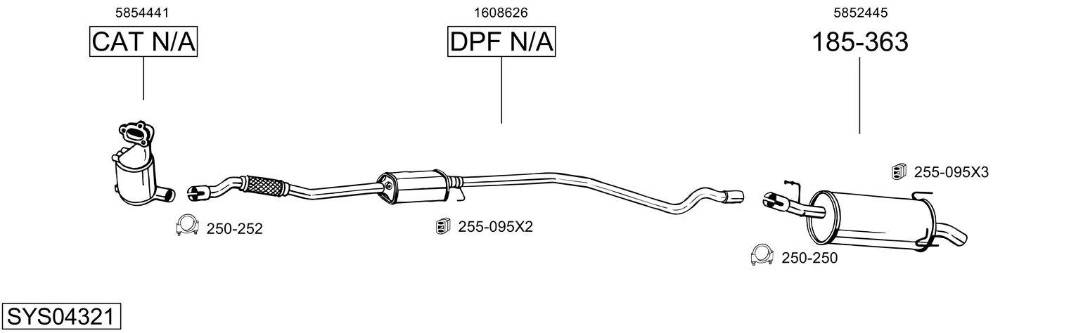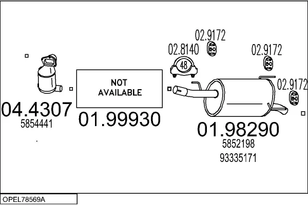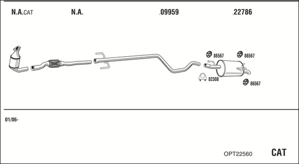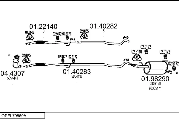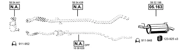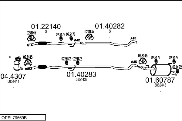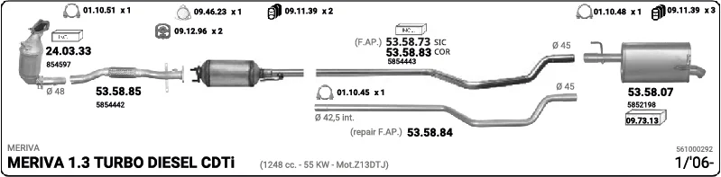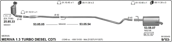 OPEL MERIVA A velkoprostorová limuzína (X03) 1.3 CDTI (E75) - Výfukový systém - kompletní od 4/2005 do 5/2010, 1248 ccm, 51 kW, 69 hp, Y 13 DT, Z 13 DT, velkoprostorová limuzína