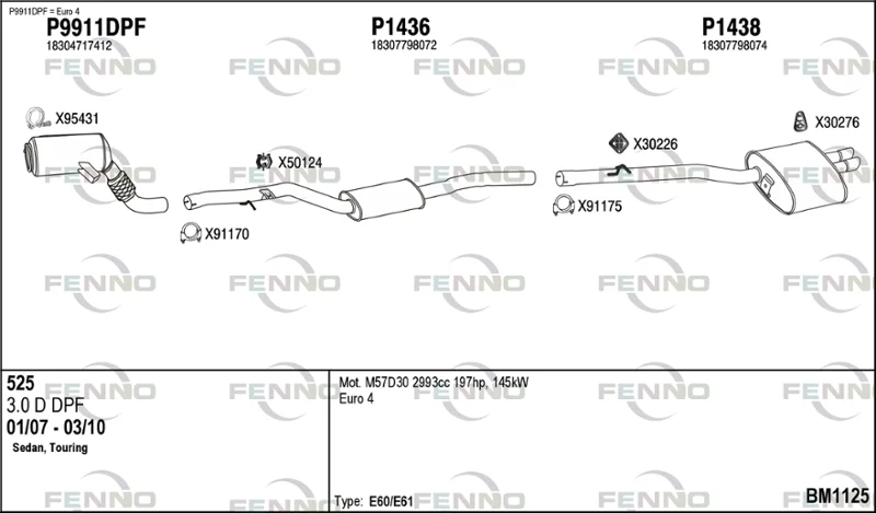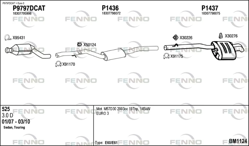 BMW 5 (E60) 525 d - Výfukový systém - kompletní od 1/2007 do 3/2010, 2993 ccm, 145 kW, 197 hp, M57 D30 (306D3), limuzína