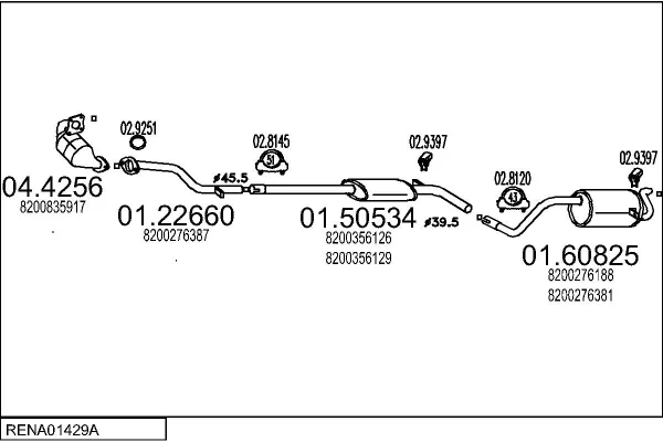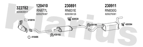 RENAULT MODUS / GRAND MODUS (F/JP0_) 1.2 16V (JP0W) - Výfukový systém - kompletní od 5/2007, 1149 ccm, 74 kW, 101 hp, D4F 784, Šikmá zadní část
