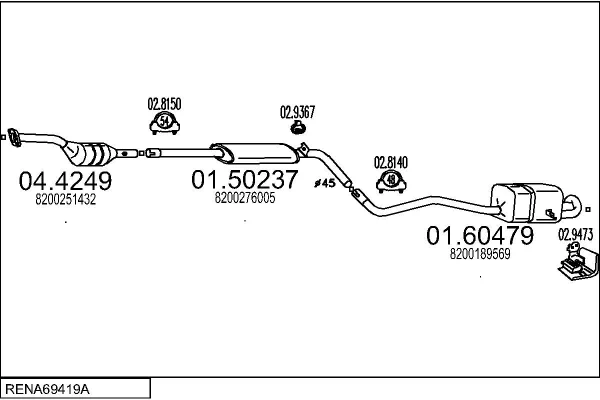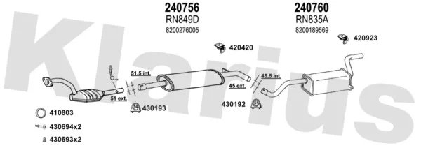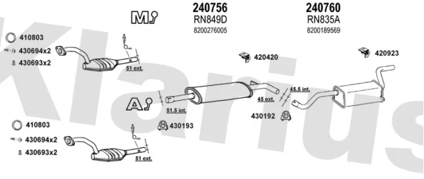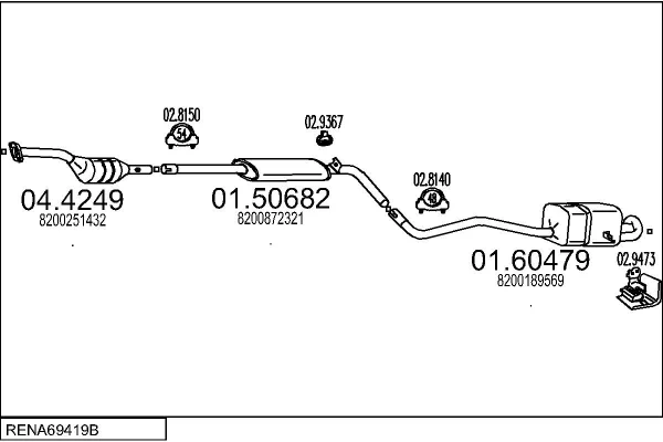 RENAULT SCÉNIC II (JM0/1_) 1.6 16V (JM1R) - Výfukový systém - kompletní od 10/2005 do 11/2008, 1598 ccm, 82 kW, 112 hp, K4M 706, K4M 766, K4M 812, K4M 813, velkoprostorová limuzína