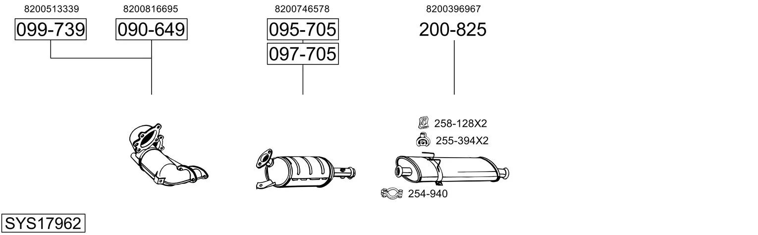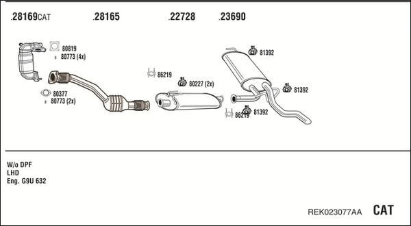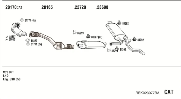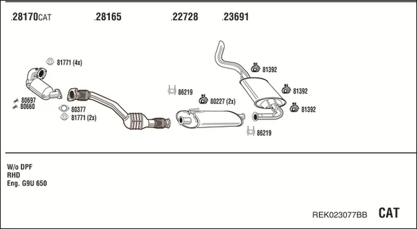 RENAULT MASTER II Krabice (FD) 2.5 dCi (FD01, FD02, FD21, FD22, FD31, FD32, FD3Y, FD71,... - Výfukový systém - kompletní od 8/2006 do 1/2010, 2463 ccm, 88 kW, 120 hp, G9U 650, Krabice