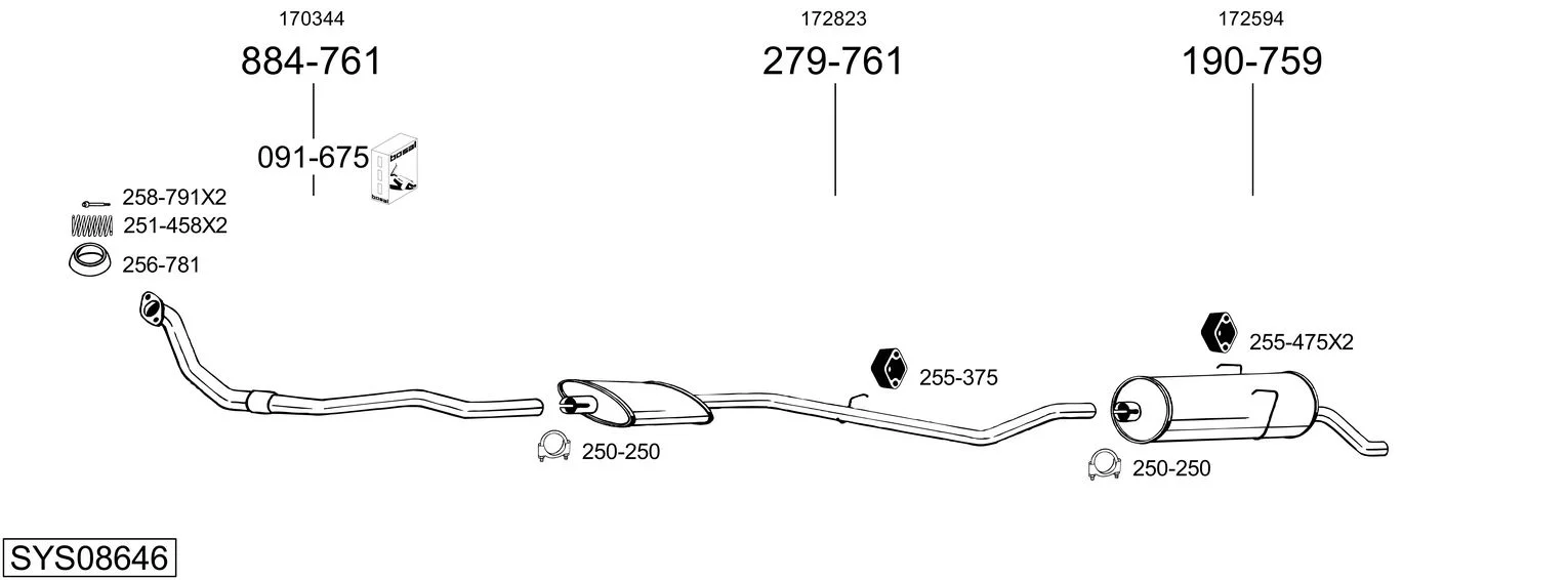 PEUGEOT 205 II (20A/C) 1.6 GTI - Výfukový systém - kompletní od 10/1987 do 12/1989, 1580 ccm, 76 kW, 103 hp, 180A (XU5J), 180Z (XU5J), Šikmá zadní část