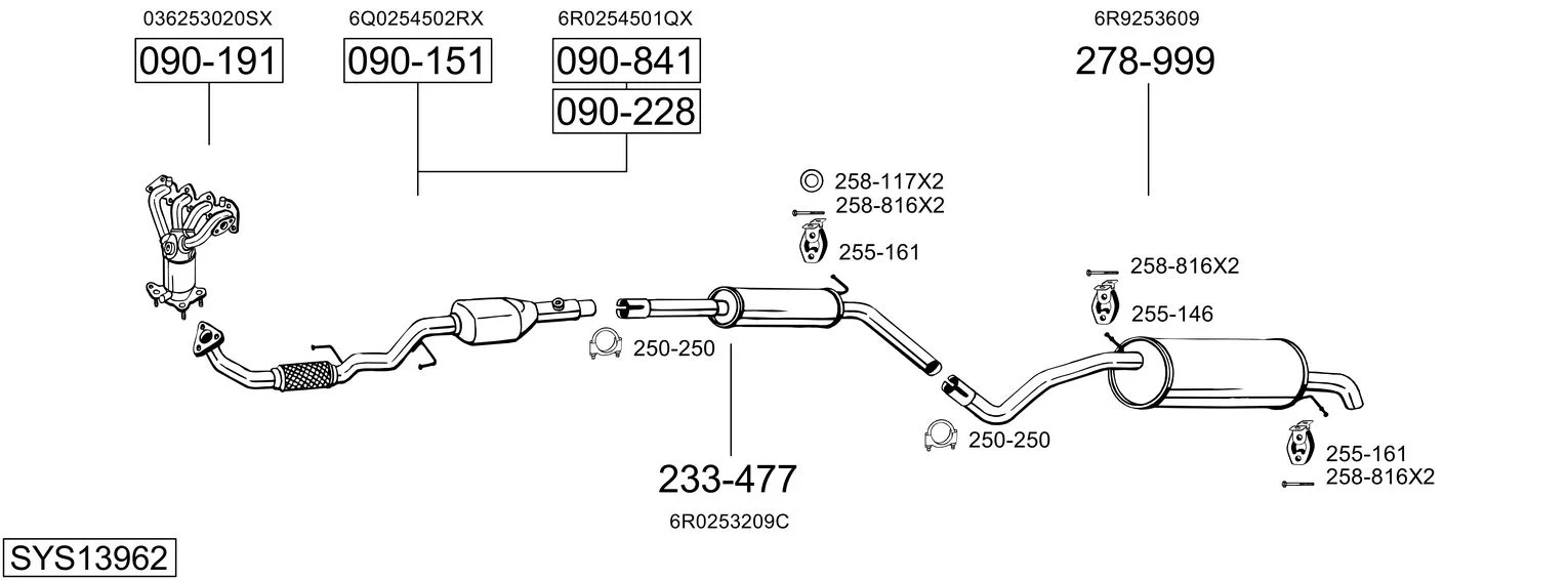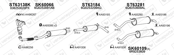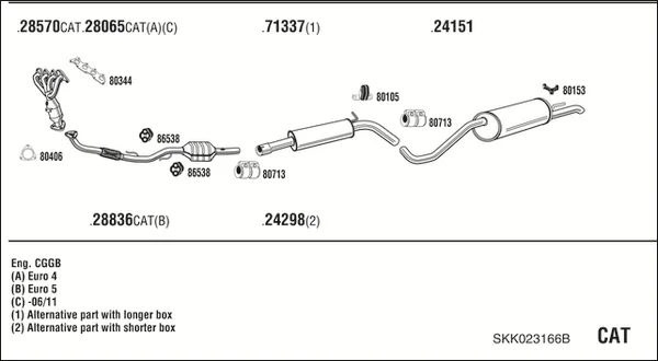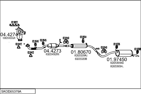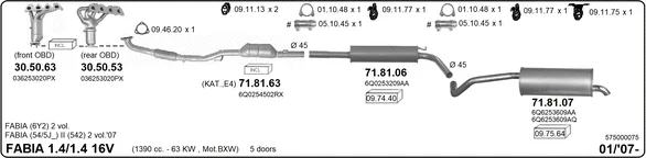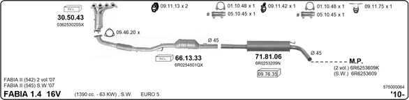 SKODA FABIA II Combi (545) 1.4 - Výfukový systém - kompletní od 10/2007 do 12/2014, 1390 ccm, 63 kW, 86 hp, BXW, CGGB, kombi