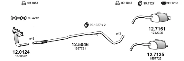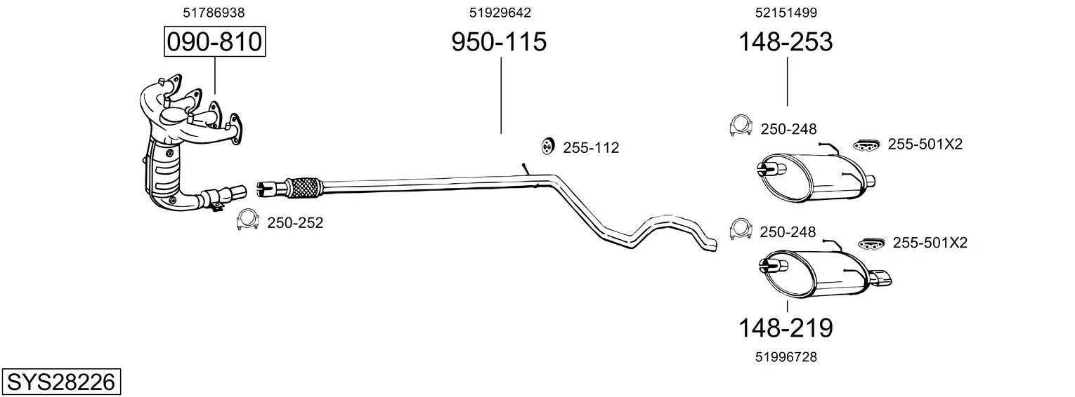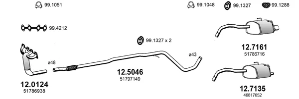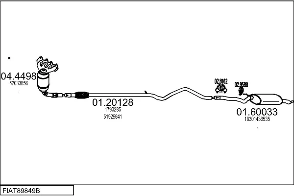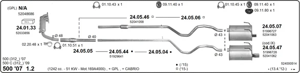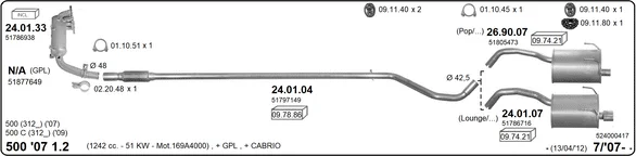 FIAT 500 (312_) 1.2 (312AXA1A) - Výfukový systém - kompletní od 7/2007, 1242 ccm, 51 kW, 69 hp, 169 A4.000, Šikmá zadní část