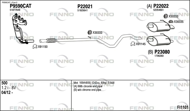 FIAT 500 (312_) 1.2 (312AXA1A) - Výfukový systém - kompletní od 7/2007, 1242 ccm, 51 kW, 69 hp, 169 A4.000, Šikmá zadní část