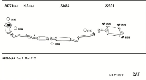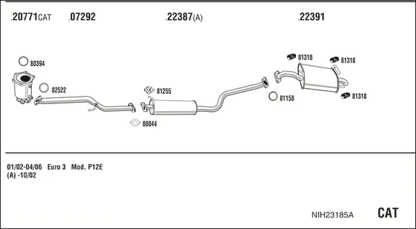 NISSAN PRIMERA (P12) 1.6 - Výfukový systém - kompletní od 1/2002 do 4/2006, 1597 ccm, 80 kW, 109 hp, QG16DE, limuzína
