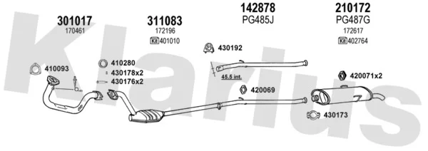 PEUGEOT 205 II (20A/C) 1.4 - Výfukový systém - kompletní od 7/1988 do 9/1998, 1360 ccm, 55 kW, 75 hp, KDY (TU3M), KDZ (TU3M), KFX (TU3JP), Šikmá zadní část