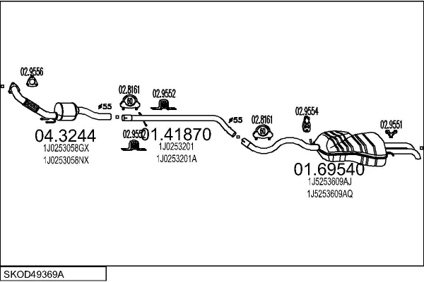 SKODA OCTAVIA I (1U2) 1.9 TDI - Výfukový systém - kompletní od 10/2005 do 12/2010, 1896 ccm, 74 kW, 100 hp, AXR, Šikmá zadní část
