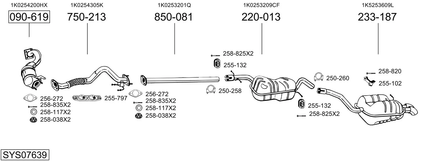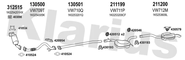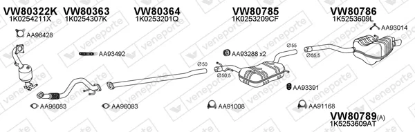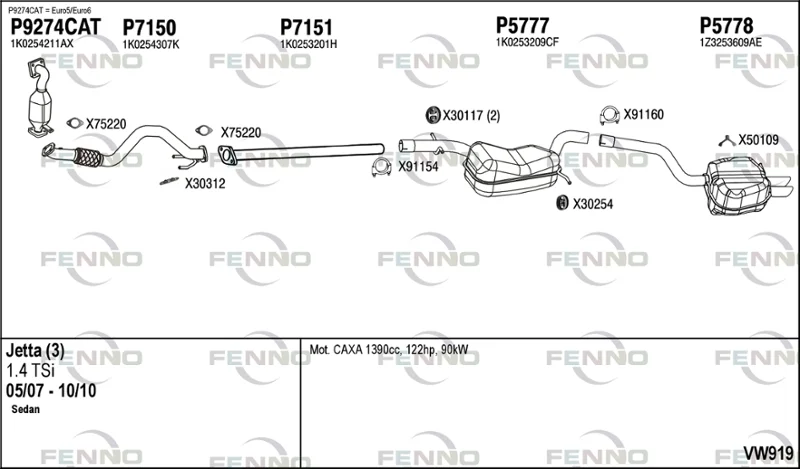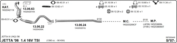 VW JETTA III (1K2) 1.4 TSI - Výfukový systém - kompletní od 5/2007 do 10/2010, 1390 ccm, 90 kW, 122 hp, CAXA, limuzína