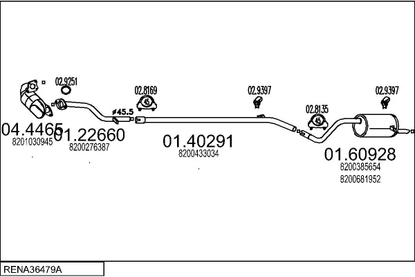 RENAULT CLIO III Grandtour (KR0/1_) 1.5 dCi (KR0G) - Výfukový systém - kompletní od 11/2007 do 12/2012, 1461 ccm, 50 kW, 68 hp, K9K 714, K9K 768, kombi