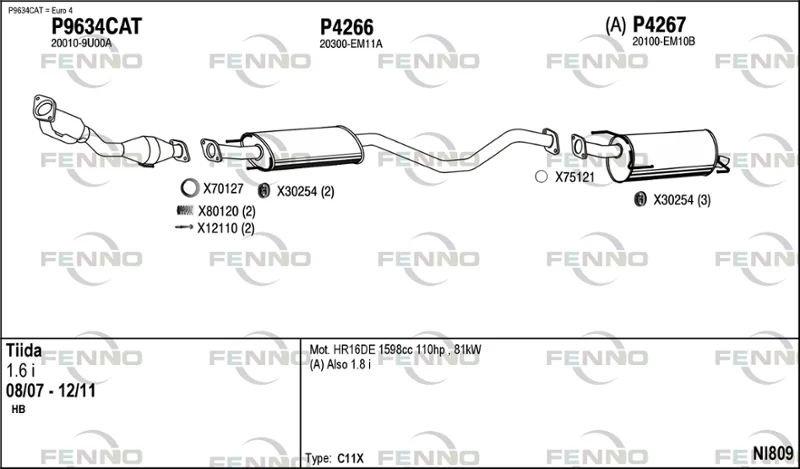 NISSAN TIIDA Šikmá zadní část (C11) 1.8 (JC11) - Výfukový systém - kompletní