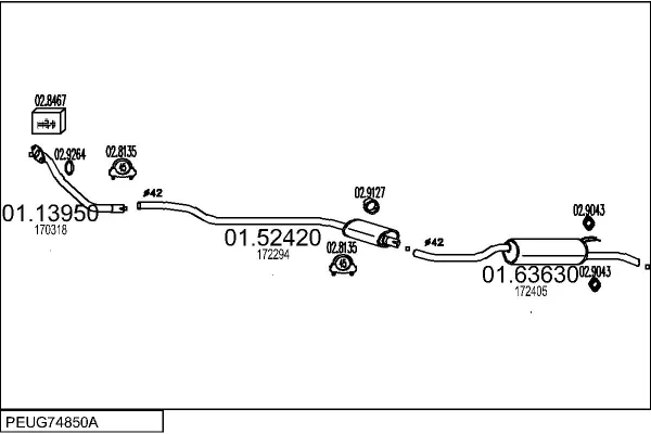 PEUGEOT 305 II Break (581E) 1.3 - Výfukový systém - kompletní od 10/1982 do 8/1986, 1290 ccm, 44 kW, 60 hp, 118 (XL5), kombi