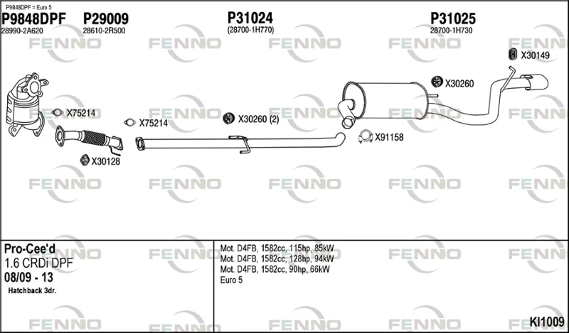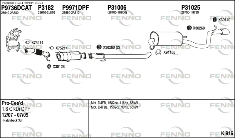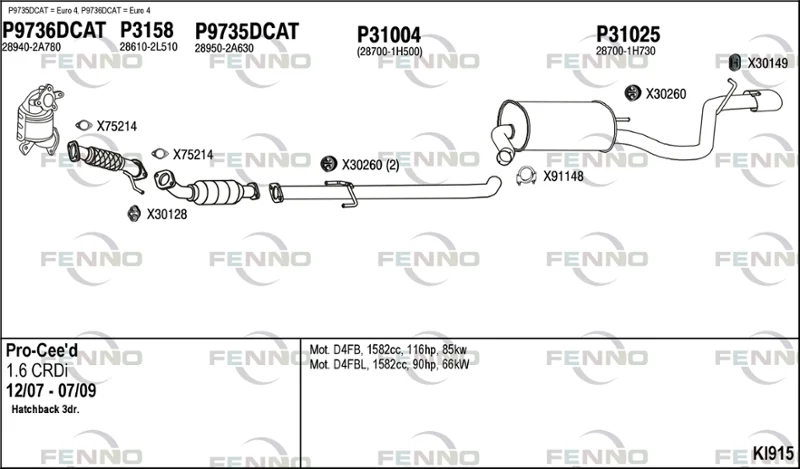 KIA PRO CEE'D (ED) 1.6 CRDi 115 - Výfukový systém - kompletní od 2/2008 do 9/2012, 1582 ccm, 85 kW, 115 hp, D4FB, Šikmá zadní část
