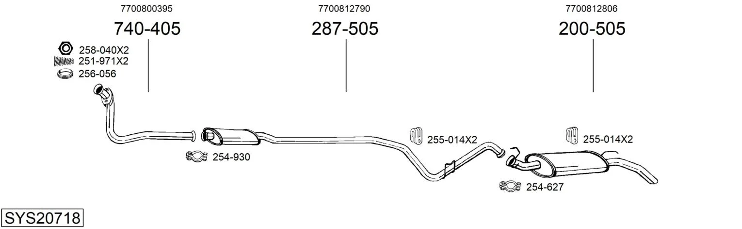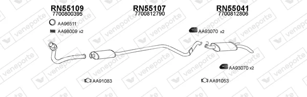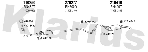 RENAULT RAPID Skříňová/velkoprostorová limuzína (F40_, G40_) 1.1 - Výfukový systém - kompletní od 9/1993 do 4/1995, 1108 ccm, 35 kW, 48 hp, C1E 762, Skříňová/velkoprostorová limuzína
