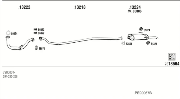 PEUGEOT 205 I Kabriolet (741B, 20D) 1.4 - Výfukový systém - kompletní od 8/1987 do 7/1990, 1360 ccm, 50 kW, 68 hp, K1D (TU3A), Kabriolet