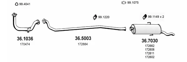 PEUGEOT 309 I (10C, 10A) 1.4 - Výfukový systém - kompletní od 3/1989 do 7/1989, 1360 ccm, 49 kW, 67 hp, K1D (TU3A), Šikmá zadní část