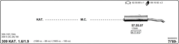 PEUGEOT 309 I (10C, 10A) 1.9 - Výfukový systém - kompletní od 3/1986 do 7/1989, 1905 ccm, 72 kW, 98 hp, DFZ (XU9J1), Šikmá zadní část